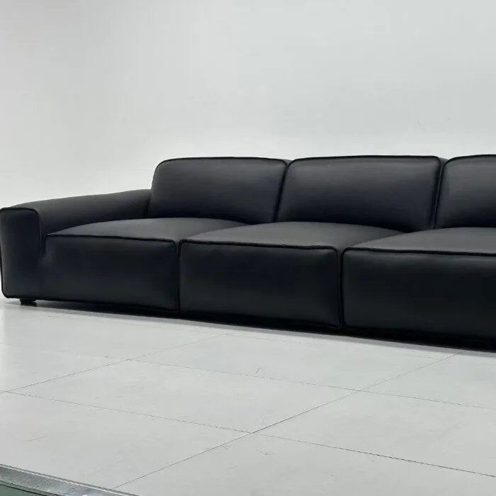 A contemporary statement piece, the Avenue Sofa combines clean lines with luxurious comfort. Designed with wide armrests and deep seating, it features a solid wood frame wrapped in premium cowhide leather, enhanced with high-density sponge and plush down filling. Its low-slung silhouette and refined finish make it an elegant choice for modern living rooms, lounges, or commercial spaces.