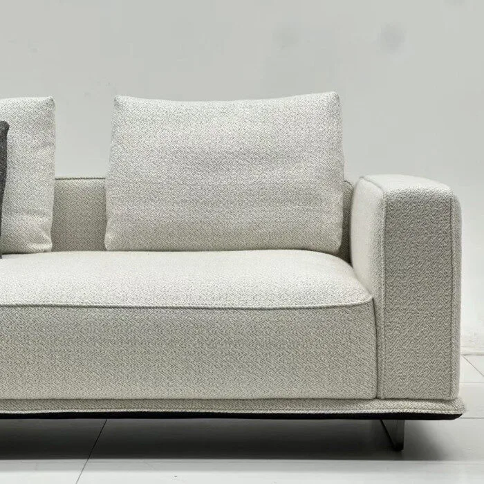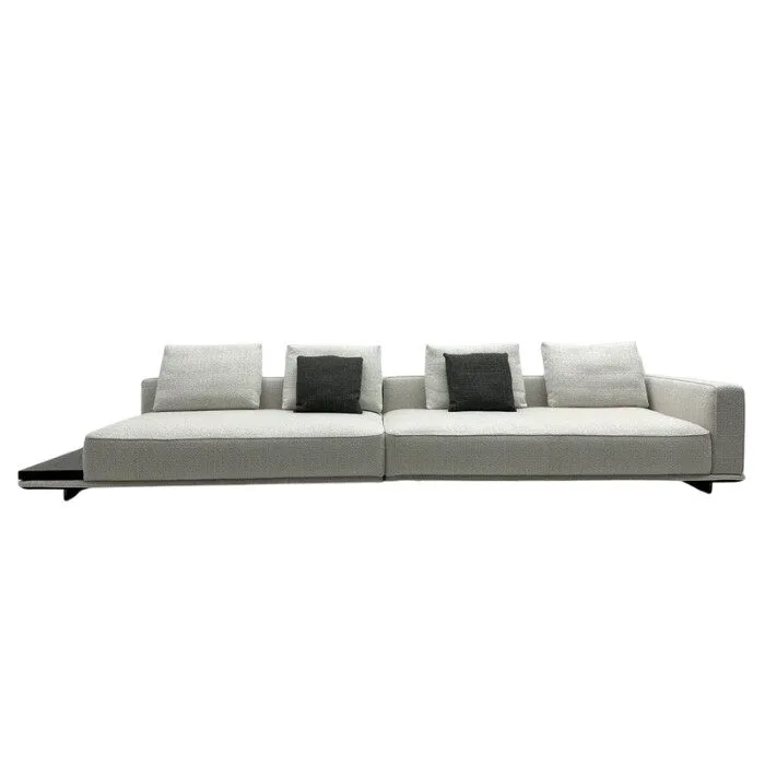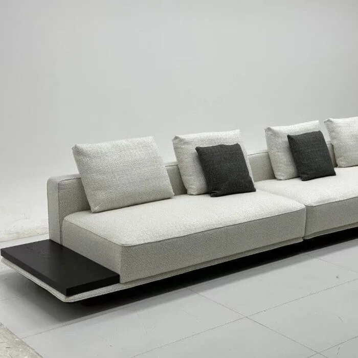 The Horizon Sofa embodies modern elegance with its generous proportions and clean-lined silhouette. Designed for both style and comfort, it features plush cotton-linen upholstery paired with high-density sponge cushioning, ensuring a soft yet supportive seating experience. Built on a solid wood frame, this sofa offers durability while maintaining a luxurious aesthetic. The extended chaise and integrated wooden platform add both functionality and a unique design statement, making it a striking centerpiece for contemporary living spaces.