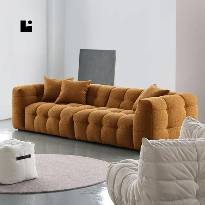 Marshmallow Sofa offers a luxurious blend of modern design and supreme comfort, making it a standout piece for any living space. Its unique grid-like tufting pattern creates a visually striking yet sophisticated aesthetic, ideal for contemporary or minimalist interiors. Crafted with high-density cushioning and wrapped in premium fabric, it ensures a plush seating experience. The modular design allows for versatility in arrangement, perfect for larger rooms or sectional setups. Accented with soft throw pillows, this sofa exudes both style and functionality, making it a perfect centerpiece for lounging or entertaining.