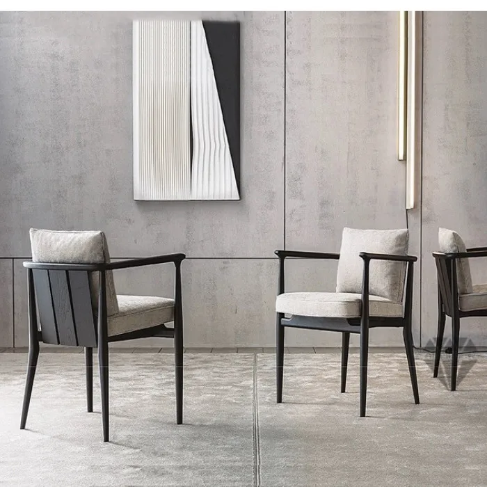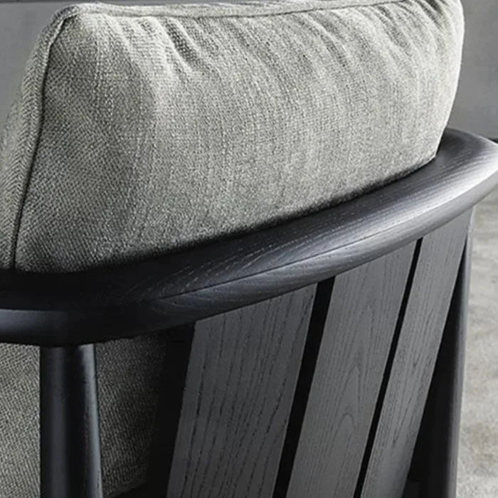 Elevate your space with this elegant armchair featuring a sleek dark wooden frame and soft beige fabric cushions. Designed for both comfort and style, its minimalist design fits seamlessly into any living room, dining area, or office. Perfect for those who value timeless craftsmanship and modern aesthetics.